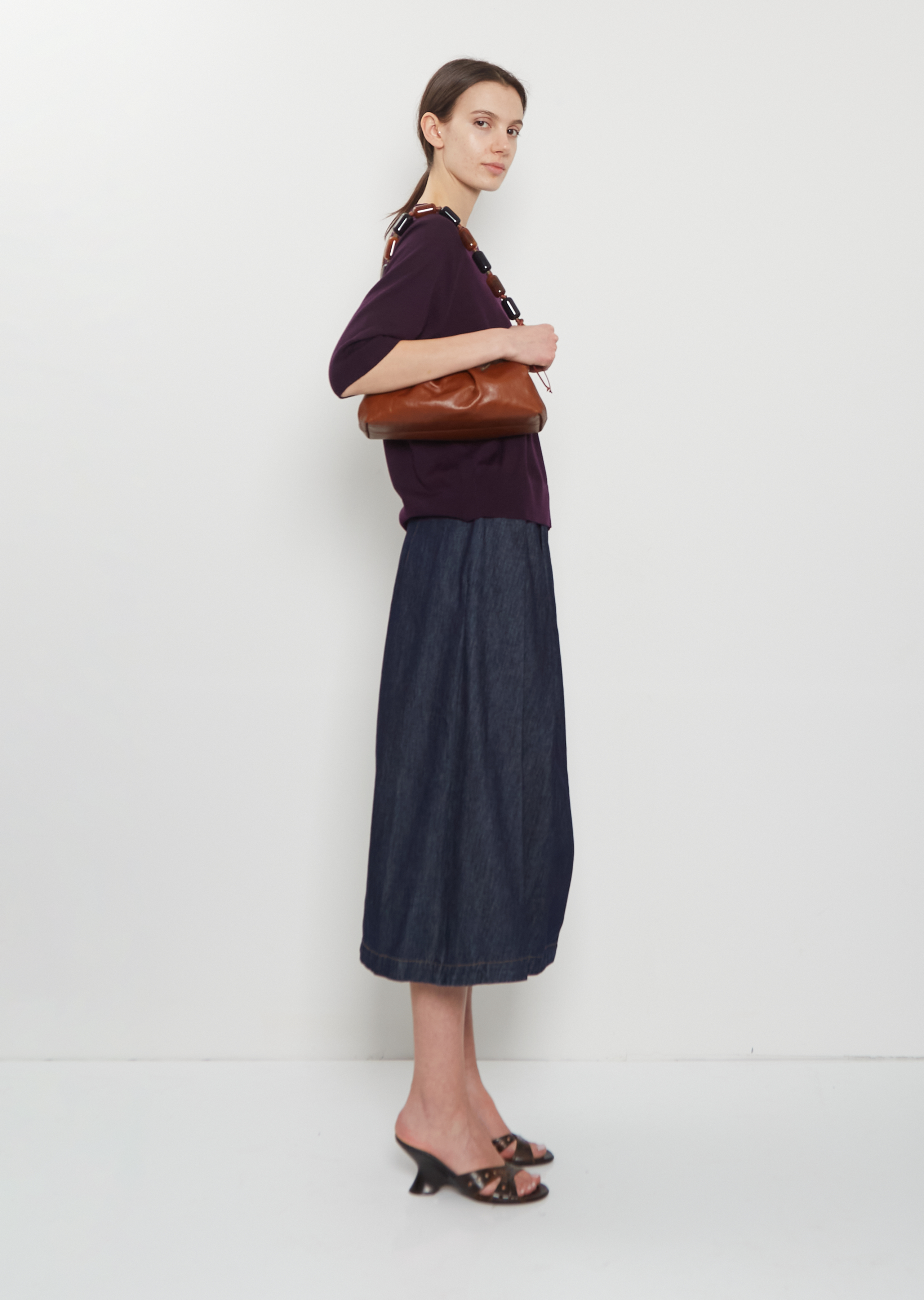 Dries Van Noten tan brown shoulder bag with a detachable large beads strap in folded soft nappa leather. Features a top magnetic snap closure and an interior slip pocket. Lined in suede. Includes a leather detachable and adjustable strap.