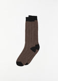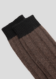 Begg x Co brown crew socks with contrasting tip, heel and hem in a cashmere ribbed knit.