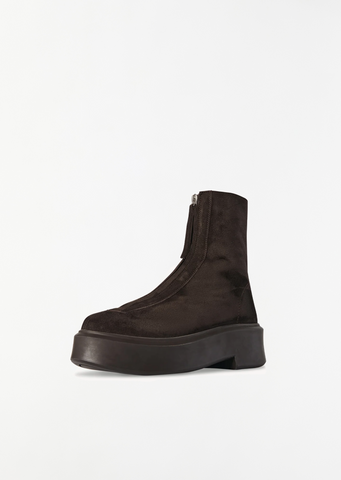 Zipped Suede Boot I — Dark Brown