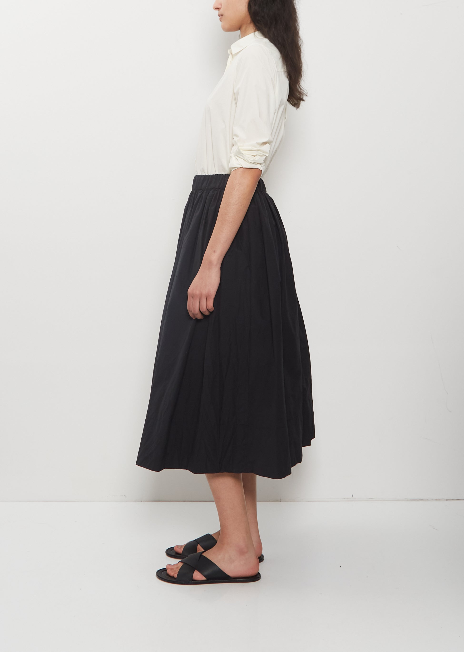 Technical Poplin Gathered Skirt — Black