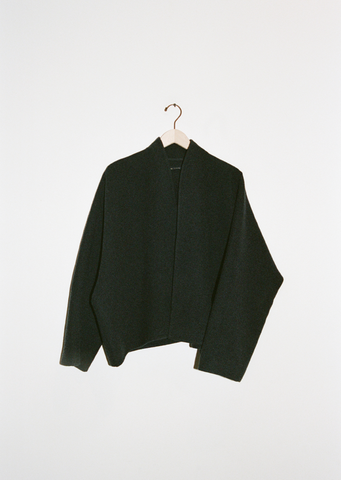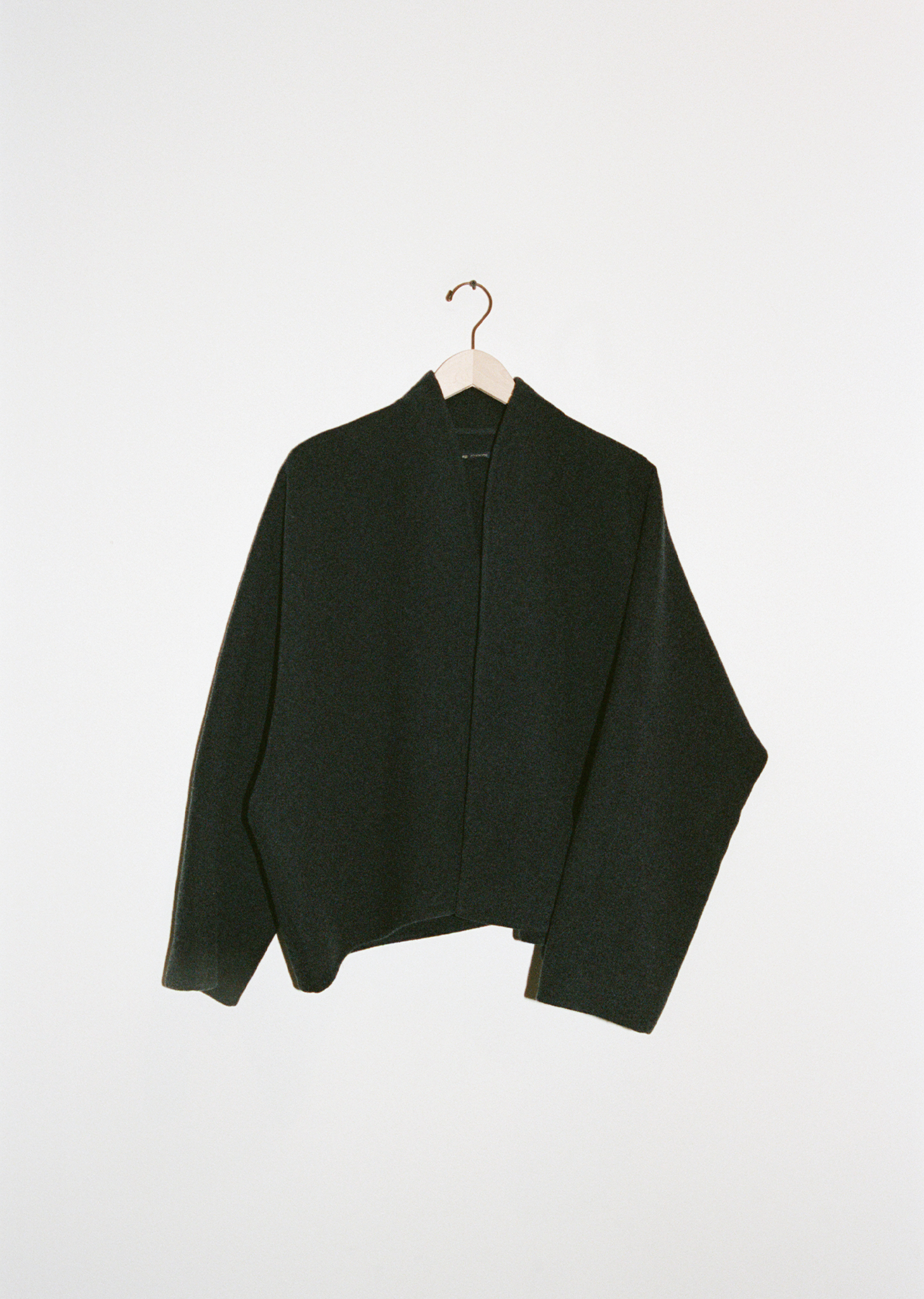 Sofie D'Hoore charcoal grey open-front jacket with wide dolman sleeves in a wool and silk blend felt. Comes unlined. Boxy, relaxed fit.