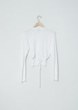 Amomento long sleeve cardigan with back cut-out detail in rayon and nylon knit. Ribbed neckline, and sleeve hem. Dropped shoulders. Clean, edge finish at sleeves. Cropped, relaxed fit.