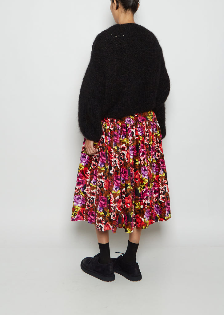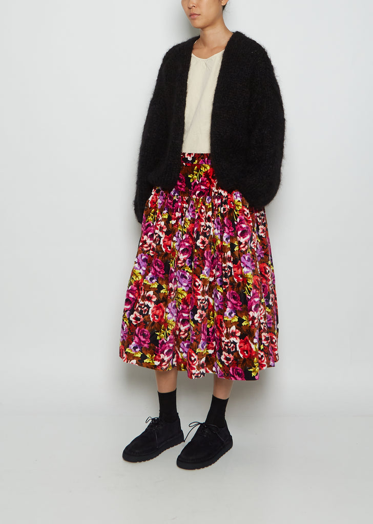 Casey Casey signature blouson fit cardigan sweater in black with a rounded front hem and voluminous back and wide sleeves knitted in kid mohair.