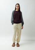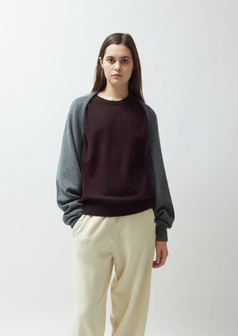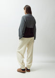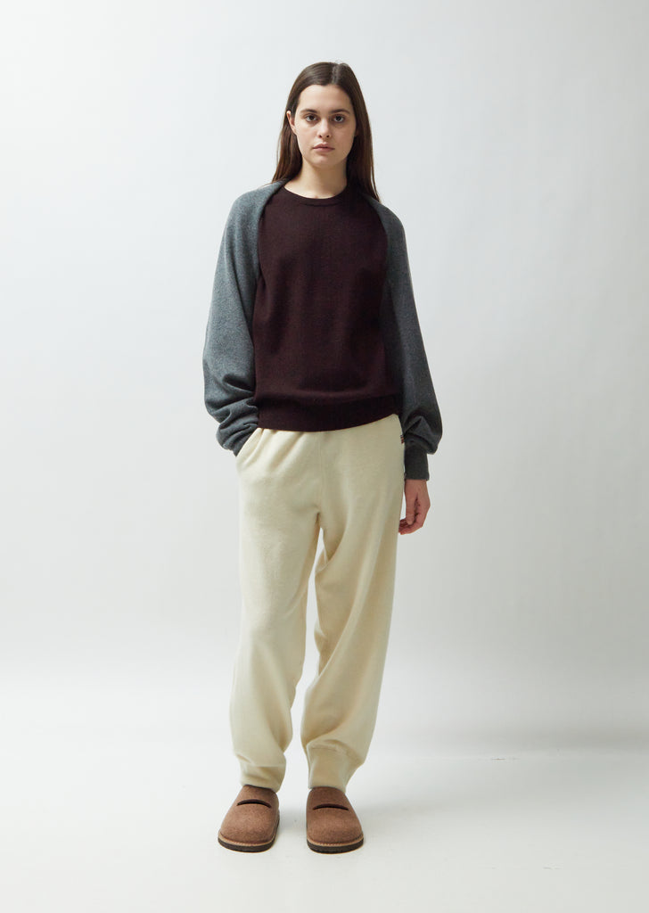 Extreme Cashmere grey bolero sweater that double-functions as scarf in a cashmere blended knit. Features ribbed sleeve cuffs and signature multicolored stitch stitch detailing at the sleeve cuff.