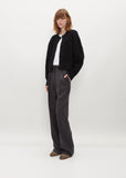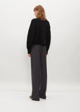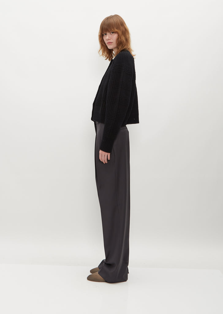 Loulou Studio black round neck cardigan knitted in heavy gauge textured cashmere. Straight silhouette with a relaxed fit.