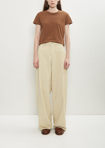6397 parsnip beige jean with wide oversized legs in cotton corduroy. Features 5-pocket construction and button and zip-fly fastening. Relaxed fit.