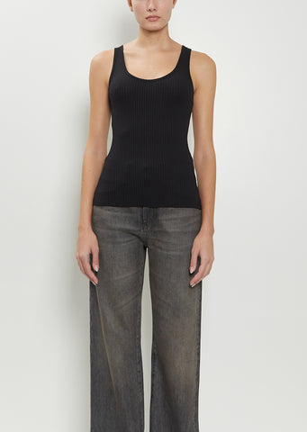 6397 black tank with a scoop neckline in a ribbed stretch cotton jersey. Closer fit.