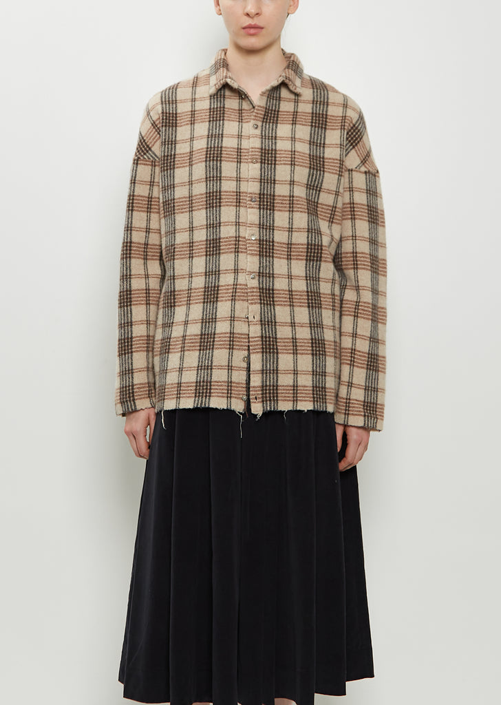 Tartan Soft Collar Wool Cashmere Shirt — Natural