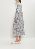 Bergfabel bright flower long sleeve dress with stand collar that can be worn up or down in soft cotton. Features a three black button closure, slightly raised waist, buttoned cuffs, balloon skirt, and concealed side seam pockets. Regular fit.