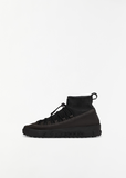 Lemaire in collaboration with Vibram asphalt sneaker with an incorporated knitted sock in soft leather. Features a durable and waterproof Wrap On rubber sole and tonal cord fastening with rubber stopper.
