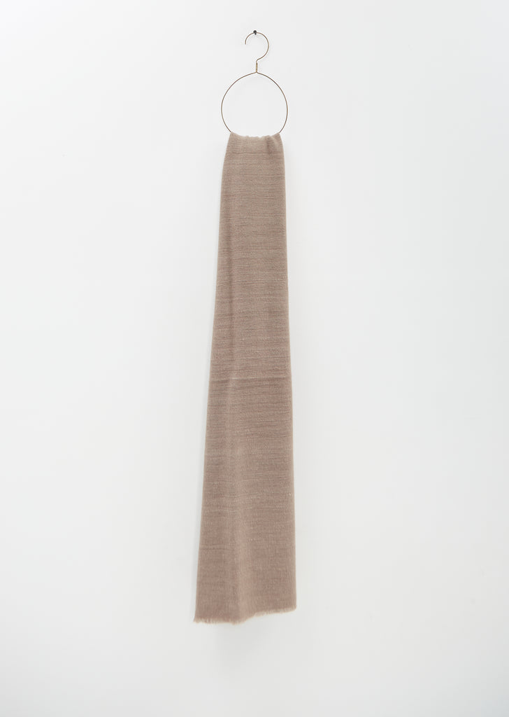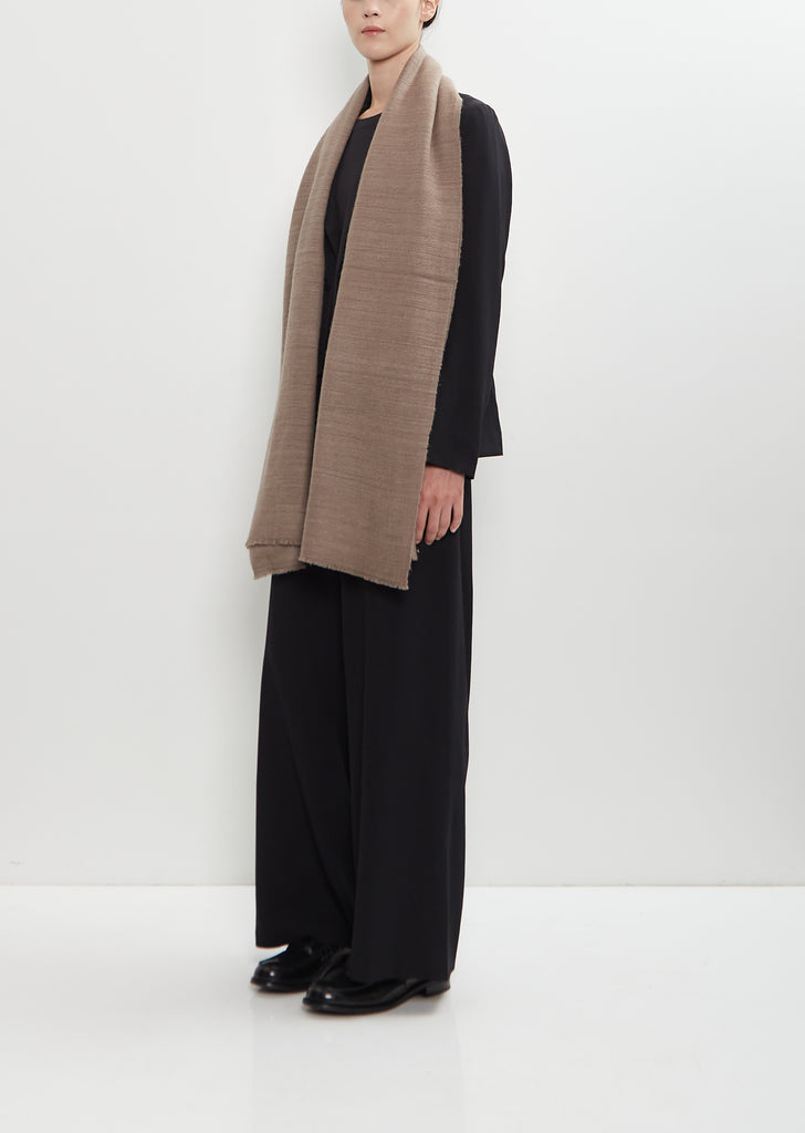 Denis Colomb dark beige signature stole with fringed edges in a hand-woven mid-weight luxe cashmere knit.