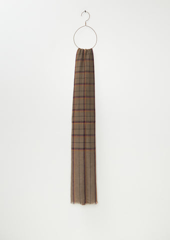 Denis Colomb dark beige and black plaid stole in with fringed edges in a soft hand-woven cashmere knit.