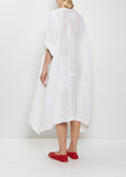 dosa rice white relaxed tunic dress with short dolman sleeves in handwoven linen with a patchwork design. Features a notched V-neckline and side seam pockets. Relaxed fit.