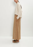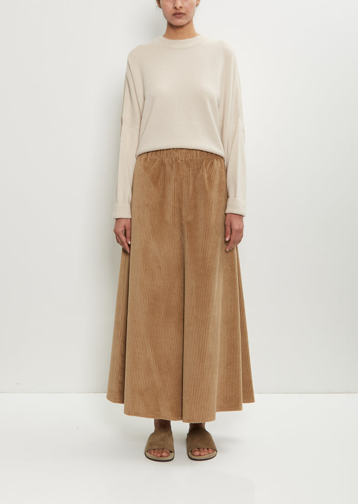 Dušan signature pull on trousers with cropped, wide legs in soft camel cotton corduroy. Features an elasticated waistband and angled side pockets. Easy fit.