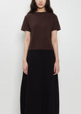 Extreme Cashmere dark brown petite-sized crewneck tee in soft lightweight cotton and cashmere blend knit. Finished with a rib trim at neckline. Easy, relaxed fit.