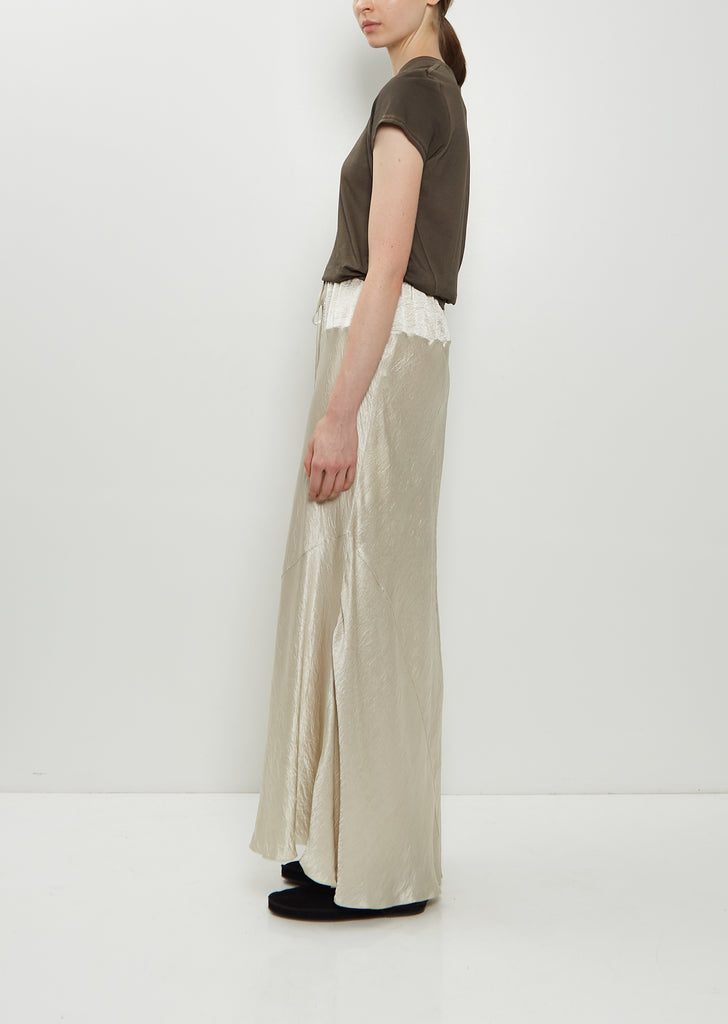 Lauren Manoogian off-white pull-on skirt with an elasticated drawstring waist in rayon with a subtle sheen and crinkle effect. Features asymmetrical seam details throughout.