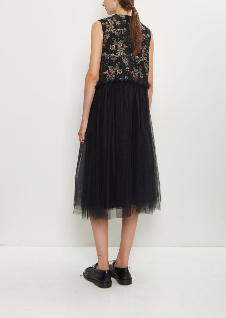 Floral Pattern Cut Jacquard Tulle Dress