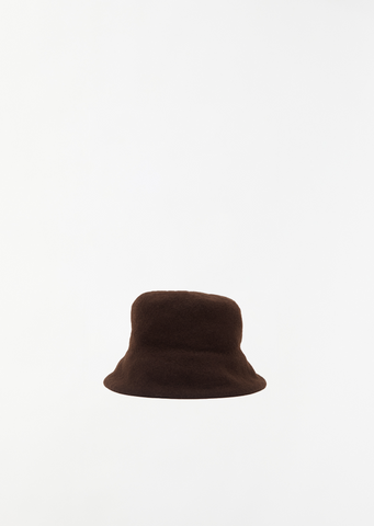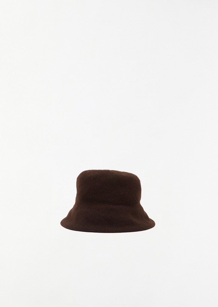 SCHA chocolate brown cloche hat with a double layered brim in a softly structured wool.
