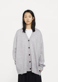 Light grey melange cardigan in finely spun wool, with soft lavender undertones. Oversized fit. Dropped shoulders, with ribbed detailing at cuffs and hem. Front shell-button closure. Side pockets. Color: Light Grey Melange. 100% Wool. Imported.