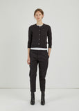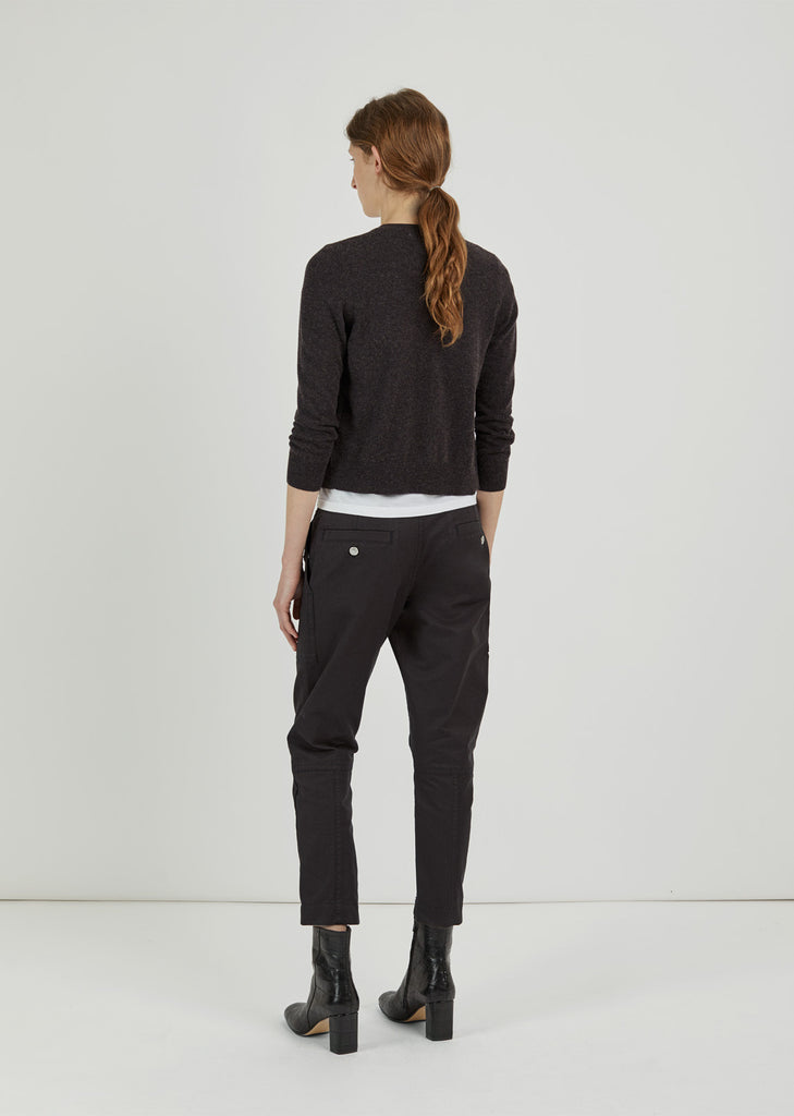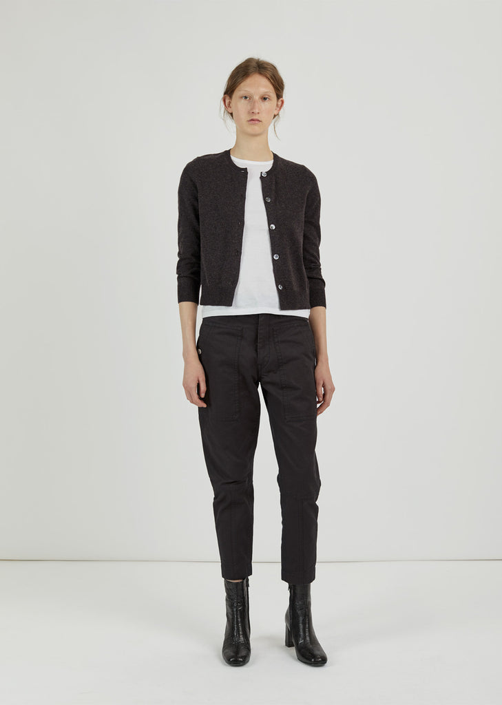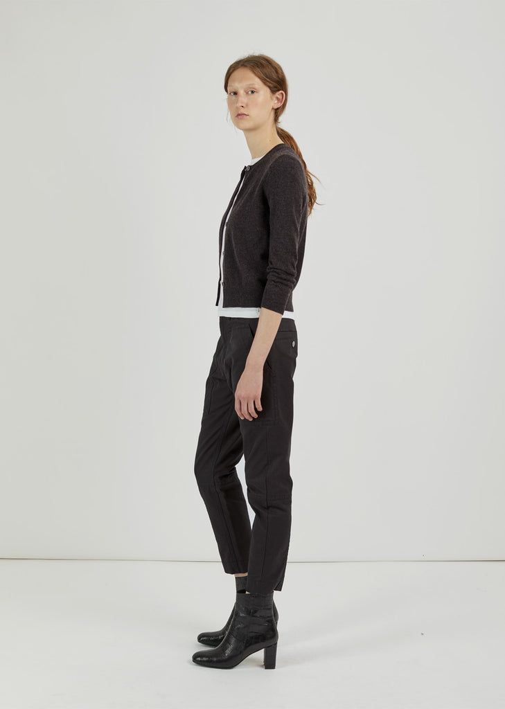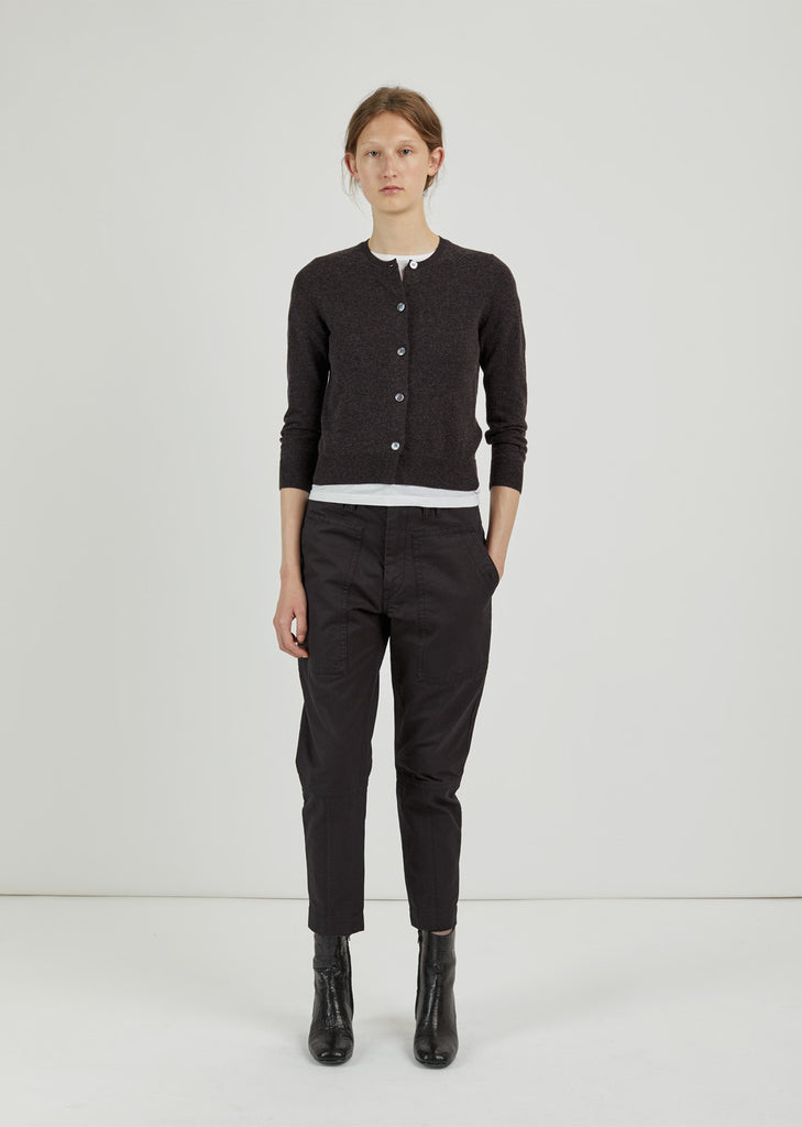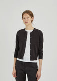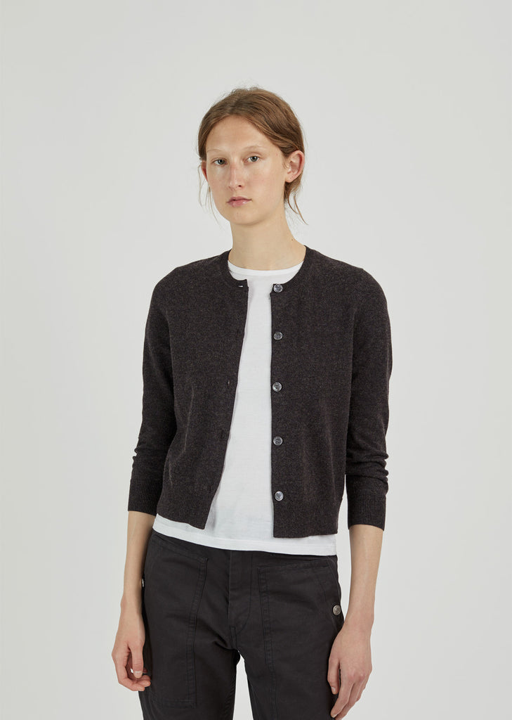 Dark grey shrunken cardigan with a tonal shell button-down, in a soft blend of cotton and wool. Shrunken, cropped fit. Ribbed trim at the collar. Slightly elasticized ribbed trim at the cuffs and bottom hem. Color: Anthracite. 70% Cotton, 30% Wool. Imported.