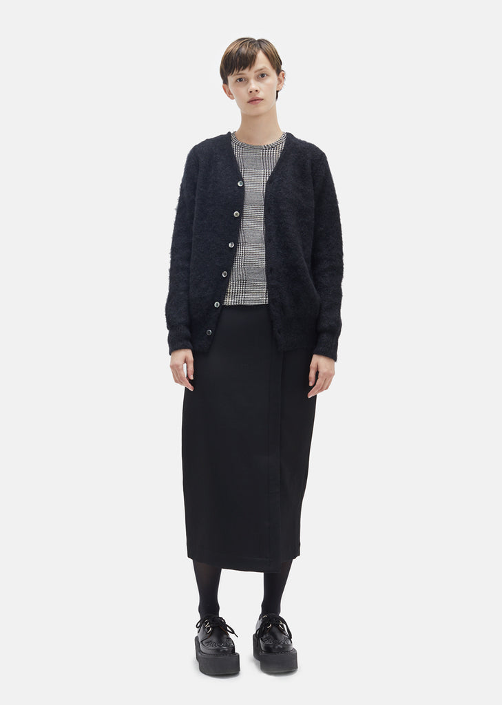 Black cardigan in a knit blend of mohair and wool, with a leopard at the back featuring sequined detailing. Classic fit. Tonal button down. Ribbed trim at the cuffs and hem. Color: Black Brown. 45% Mohair, 29% Wool, 26% Nylon.