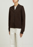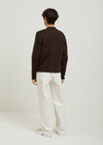The quintessential button front cardigan, made from dark brown Italian merino wool. MHL's signature roomy cut gives this style a timeless look.