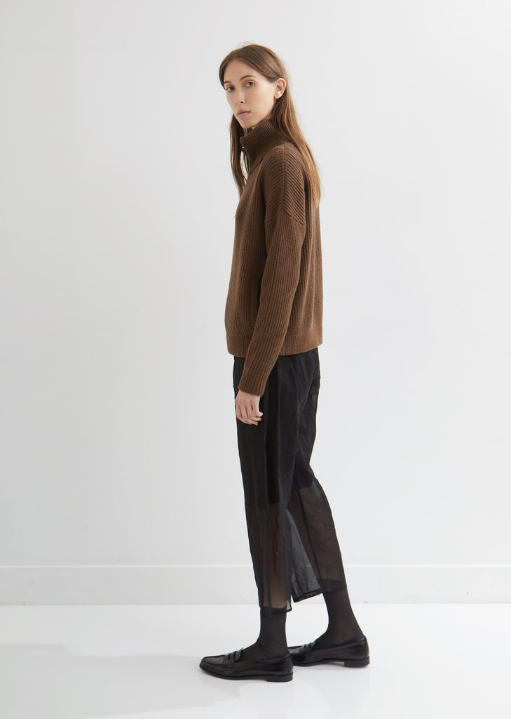 Moderne's Ae-ri cardigan in mocha is crafted of a soft Italian wool and cashmere yarn, styled with a sleek silver-tone dual zipper closure in front. A new staple piece with a super soft hand-feel, with a clean rib knit composition and slip pocketing at the waist. Finished with finer rib knitting at the standing collar and cuffs. Color: Mocha. 70% Wool, 30% Cashmere. Imported.