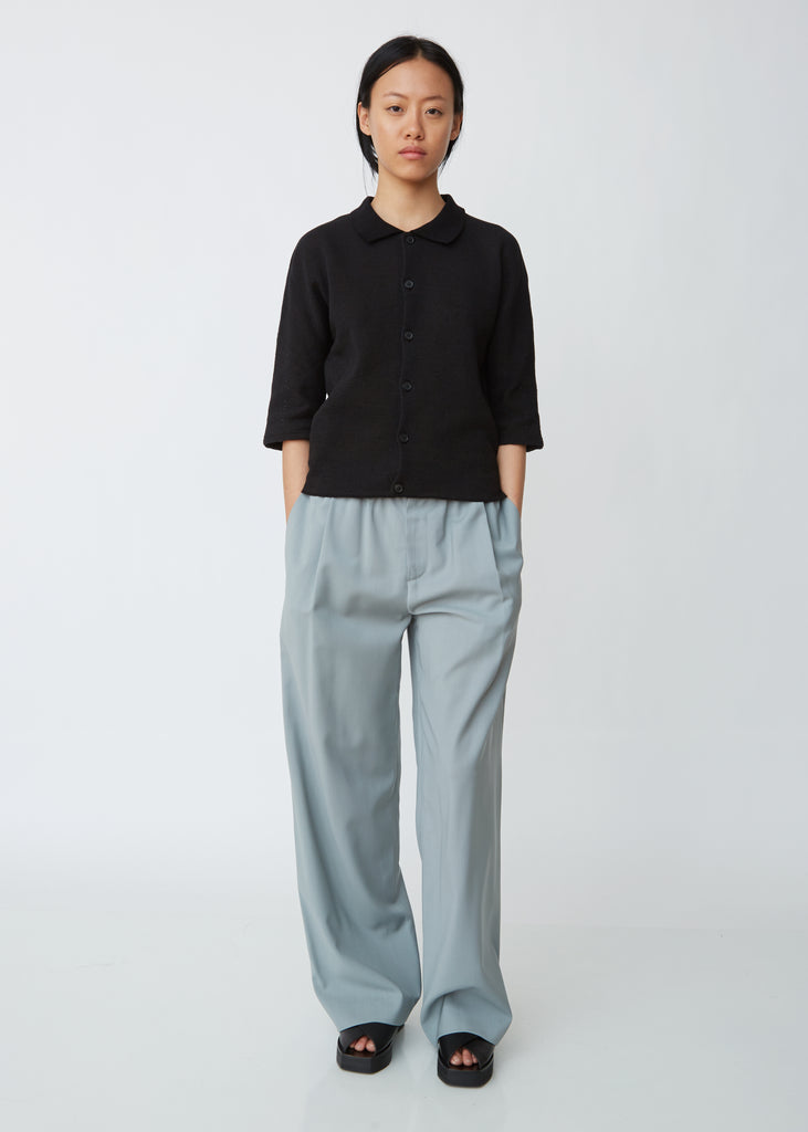 Black 'Ancient' cardigan in a soft cotton waffle knit. This sweater is made in Belgium with contrasting black button closures in front. Pointed collar. On-seam side pockets. Relaxed signature fit. Color: Black. 100% Cotton. Made in Belgium.