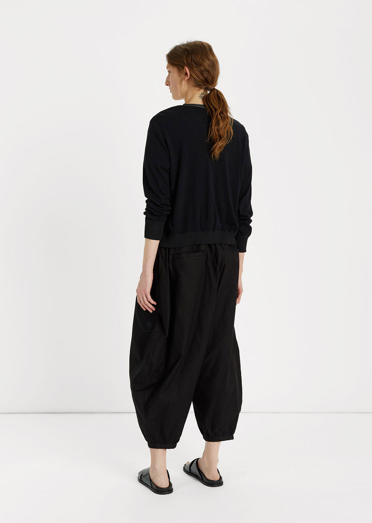 Black cotton cardigan with contrasting tri-striped green trim along the collar and pockets. Straight fit. Elasticized ribbed trim at the cuffs and hem. Iridescent shell button down. Color: Black. 100% Cotton. Made in Japan.