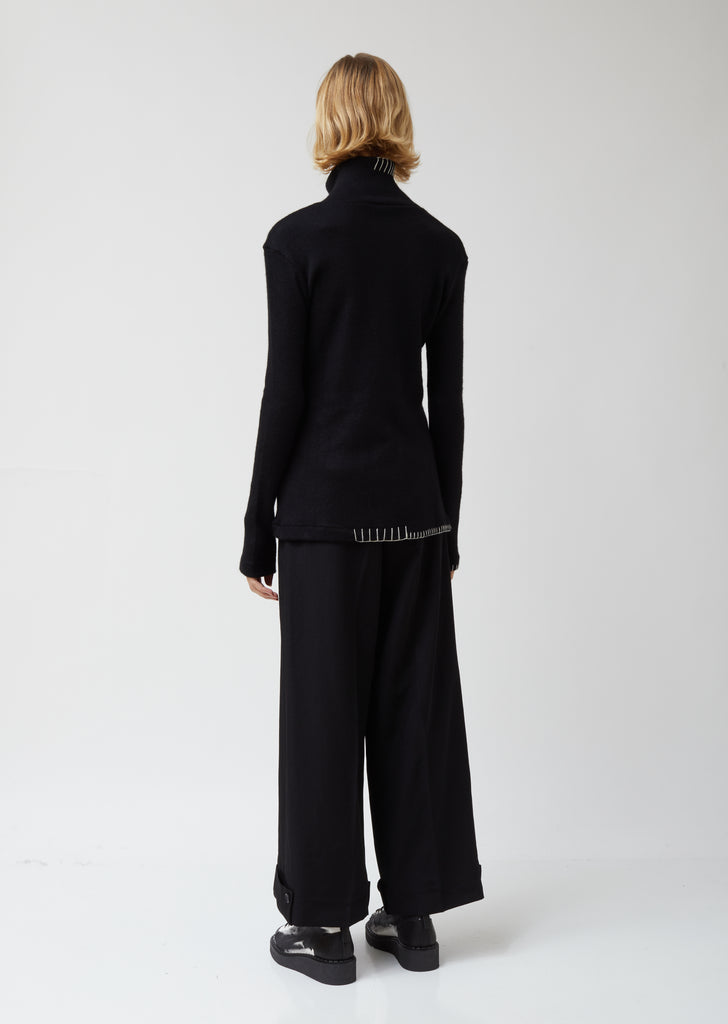 Color: Black. 50% Angora, 50% Laine Wool, 100% Acrylic. Professional dry clean only. Made in Japan.