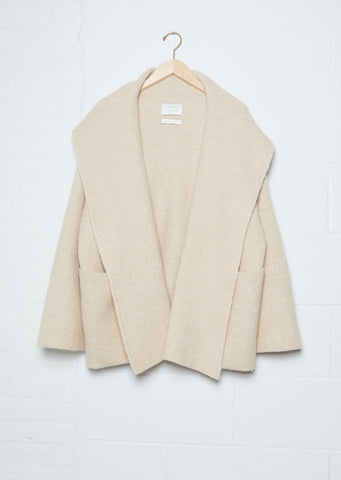 Lauren Manoogian double-face cardigan sweater coat with oversized collar in a heavyweight beige alpaca and fine merino wool blended knit. Features a drop shoulder with wide sleeves, front slit patch pockets and clean finished hemline. No front closure. Oversized fit.