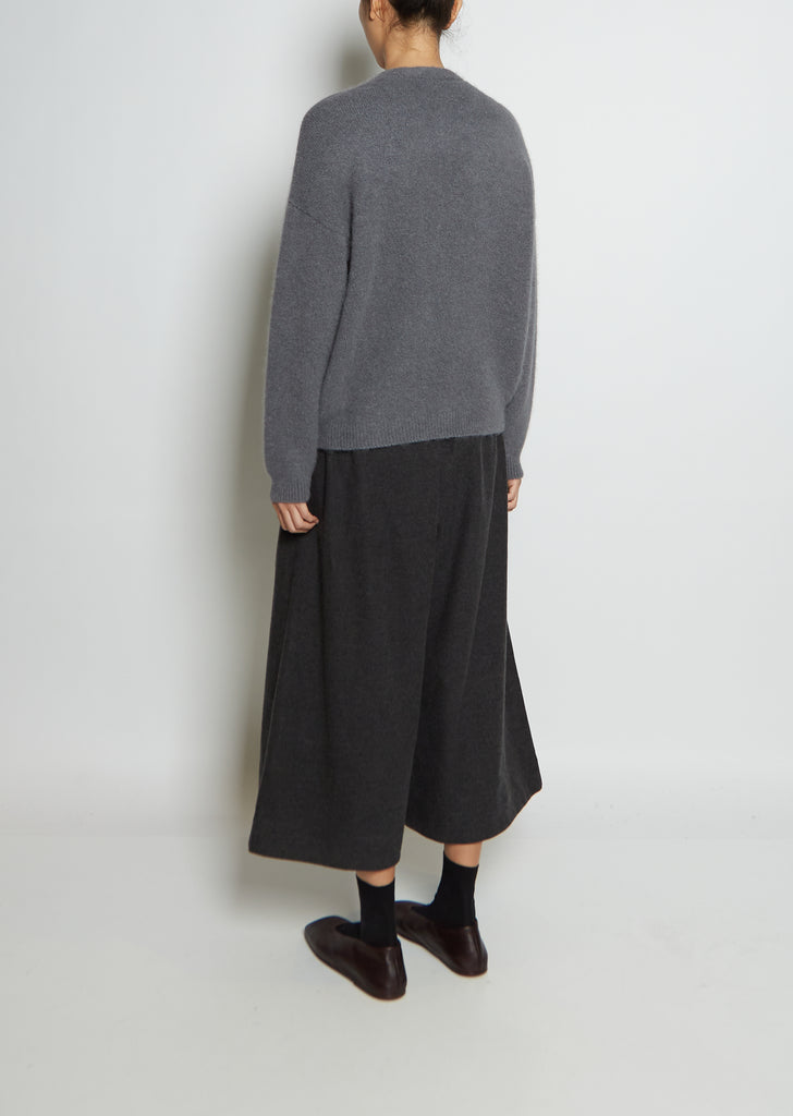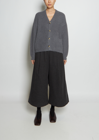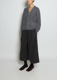 Lauren Manoogian steel-grey cardigan with seamless front pockets in stretch alpaca knit. Features dropped shoulders, rib trim and sleeve cuffs and hem. Finished with light-brown tortoise buttons.
