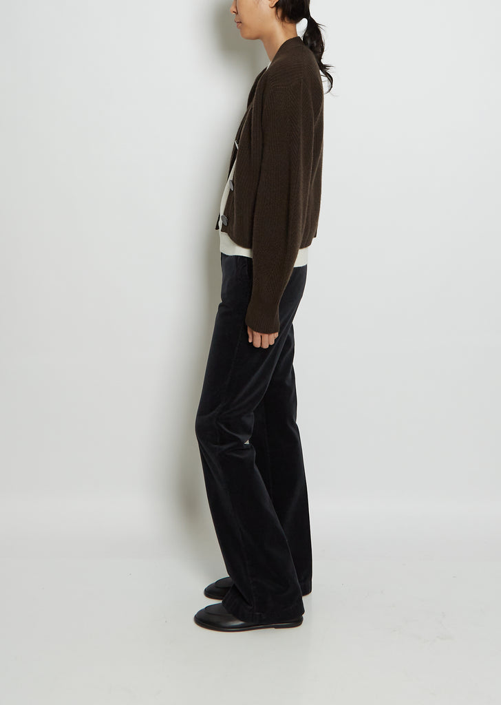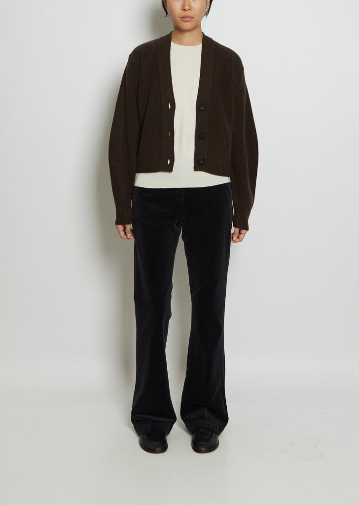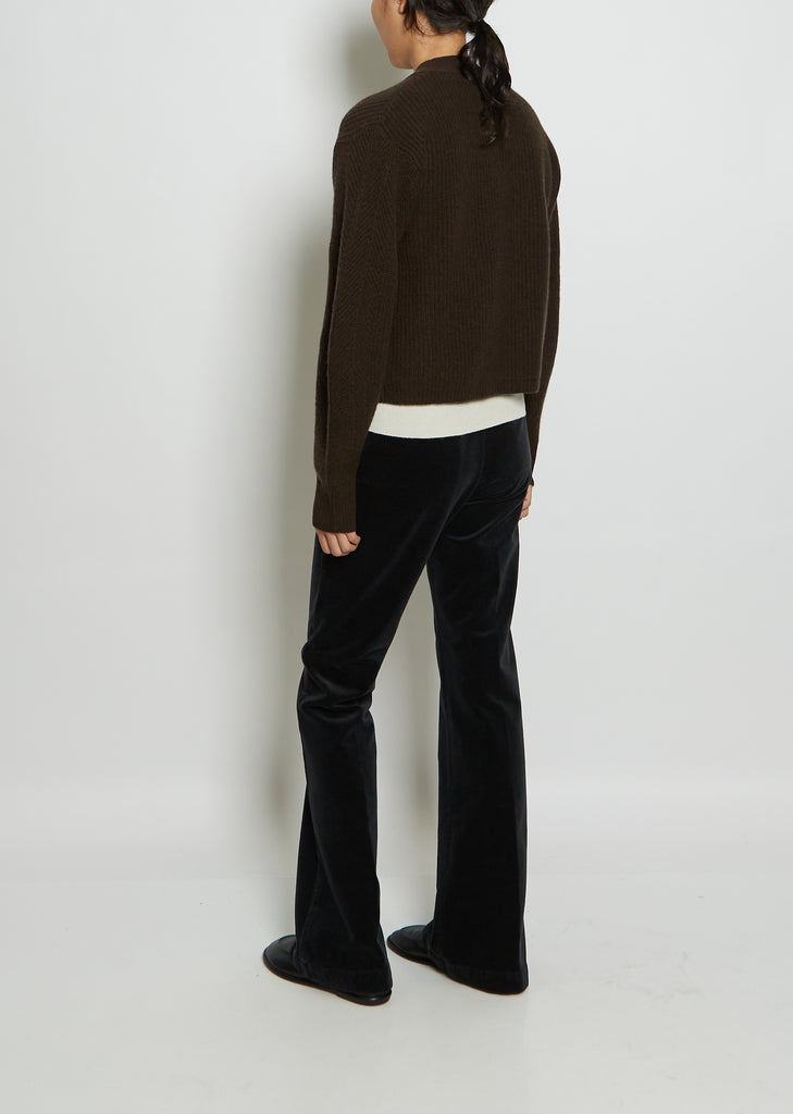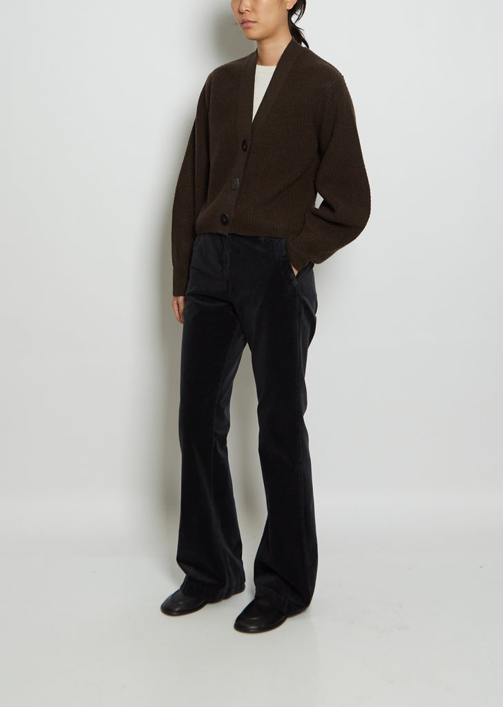 Lisa Yang wood-toned v-neck cropped cardigan sweater in an ultra-soft chunky gauge cashmere rib.