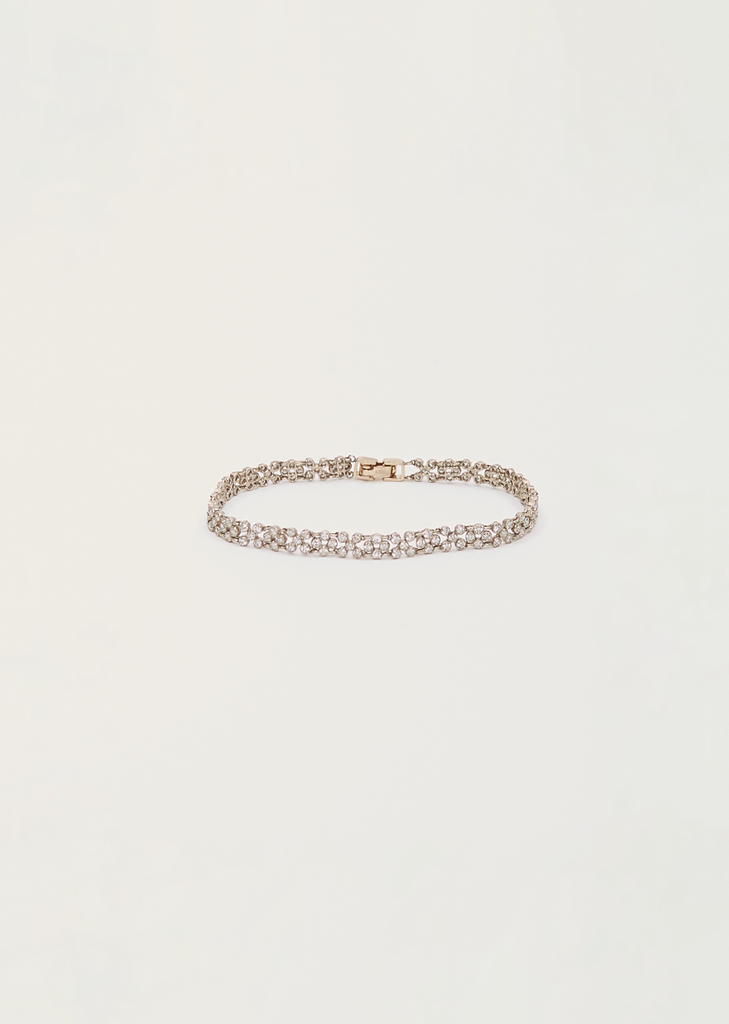 Noguchi Bijoux geometric designed bracelet with 144 white diamonds and a fold-over clasp fastening in pure 14k white gold.