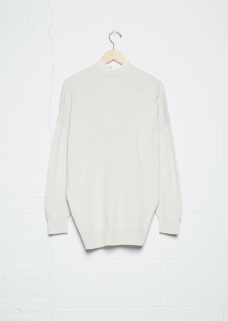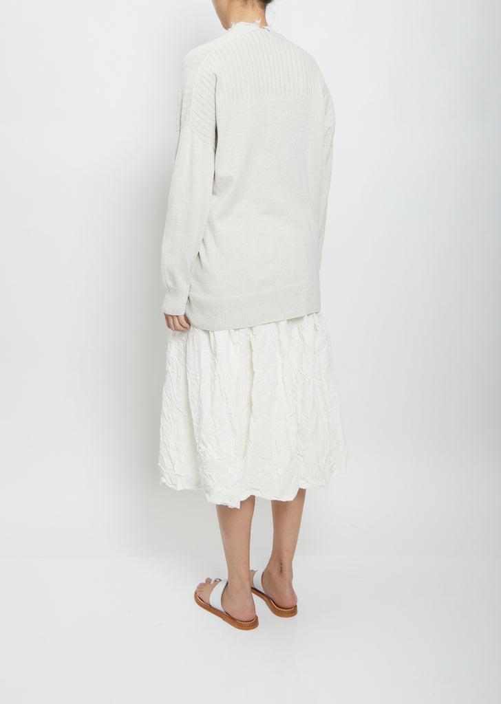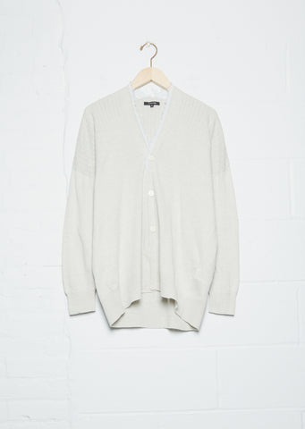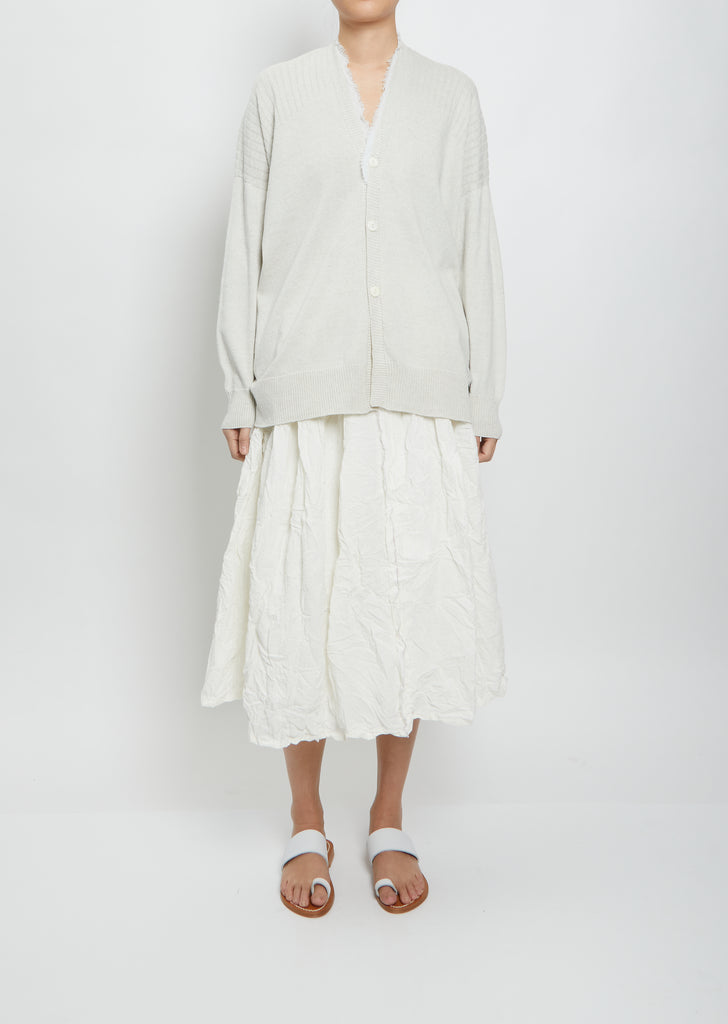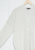 Pas de Calais ivory v-neck cardigan sweater with contrast stitching in a lightweight cotton, linen and wool blend knit.