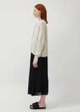 • rib-knit neckline, cuffs, and bottom band; drop shoulders; arched front hem