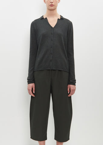 Apuntob forest green cardigan with a deep V-neck in silk, cashmere and alpaca blend knit. Features a soft collar and a tonal buttons closure at front.