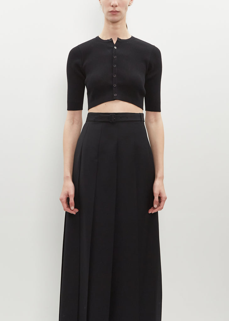 Auralee black cropped cardigan with short sleeves in ribbed giza cotton knit. Slim fit. Finished with tonal buttons.