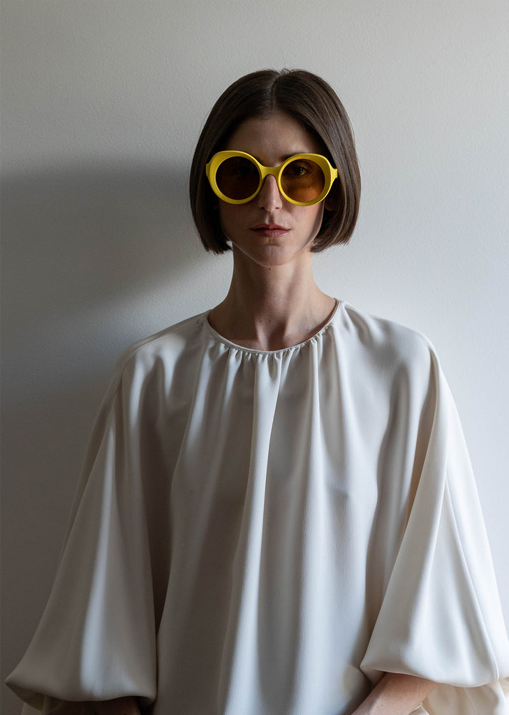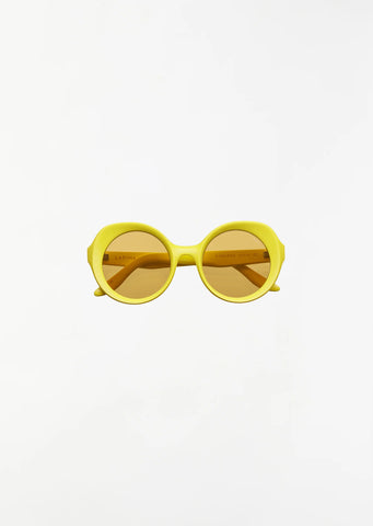 Lapima yellow sunglasses with a subtle cat-eye shape and anti reflective incolor lenses in Italian acetate.