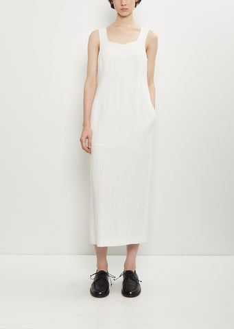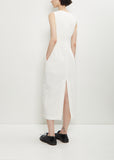 Auralee white straight dress with a subtle sweetheart neckline in a cotton linen gabardine twill. Features side seam pockets, high slit at back, and zipper closure at back neck. Half lined in tonal cotton fabric.