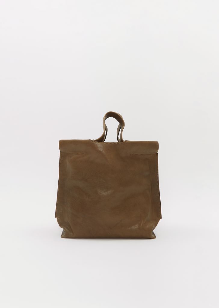 Bea Mombaers khaki shopper bag in small size with an adjustable and detachable tonal shoulder strap and short top handles in matte buffalo leather. Features a single interior zipper pocket and an interior slip pocket. Lined in cotton canvas.