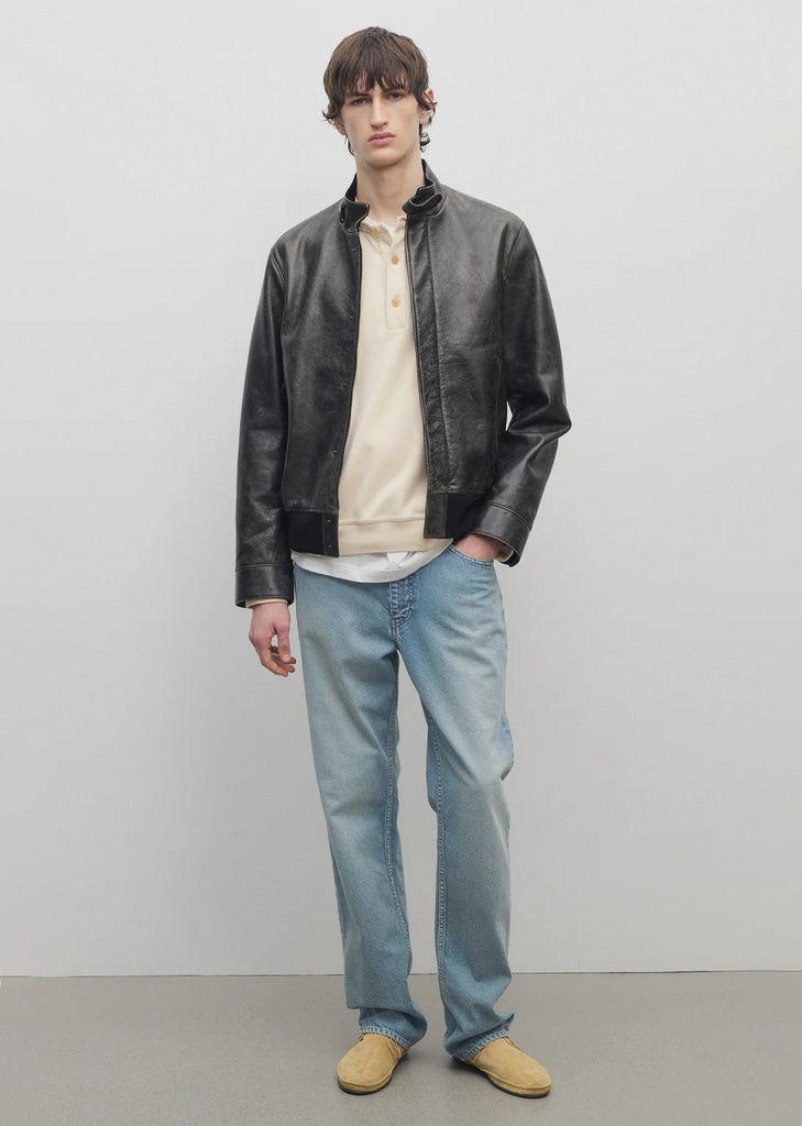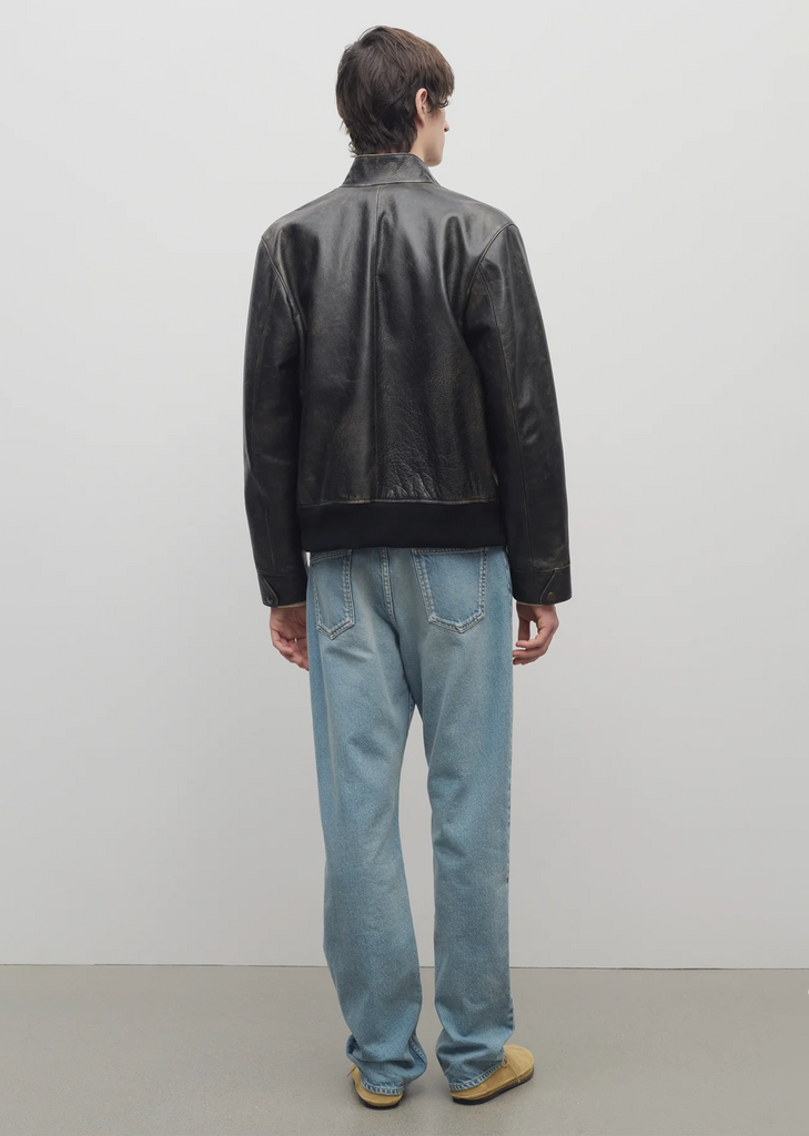 The Row light indigo jean with straight legs and a natural waist in lightweight cotton denim. Features a 5-pocket styling, tonal topstitching and a zipper-fly closure. Relaxed fit.