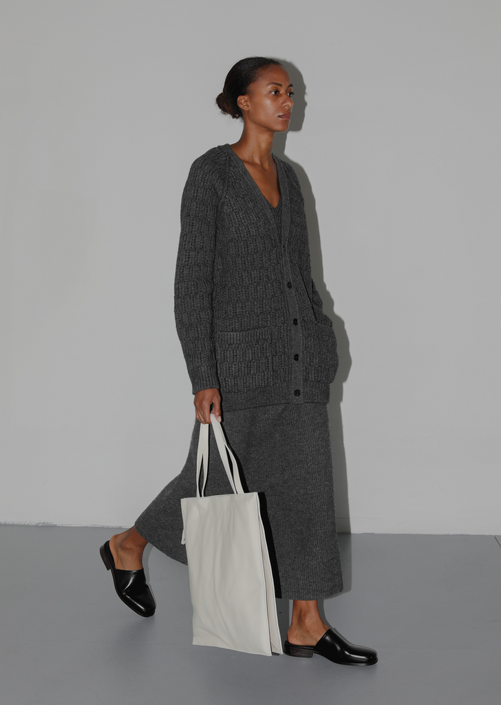 Worn with:  Wool Cord Rib Knit CamisoleFrench Merino Rib Knit Flare Skirt and Square Mule.