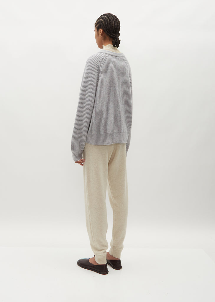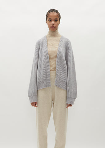 Begg x Co feather grey cardigan with a mid-gauge in mid weight cashmere. Boxy silhouette with a relaxed fit.