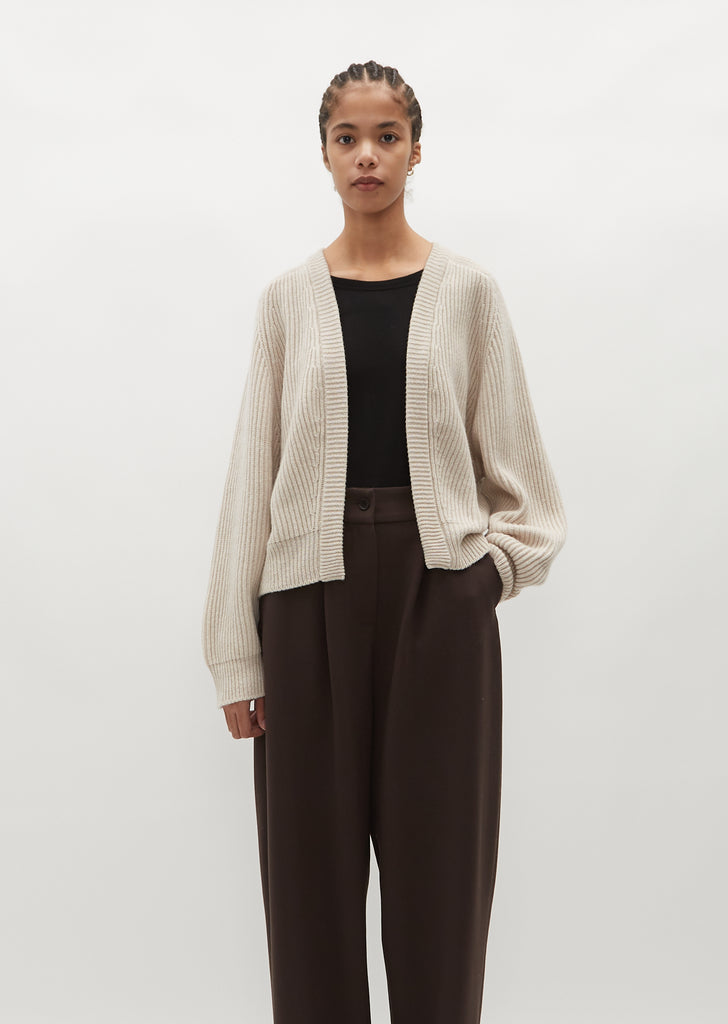Begg x Co light beige cardigan with a mid-gauge in mid weight cashmere. Boxy silhouette with a relaxed fit.