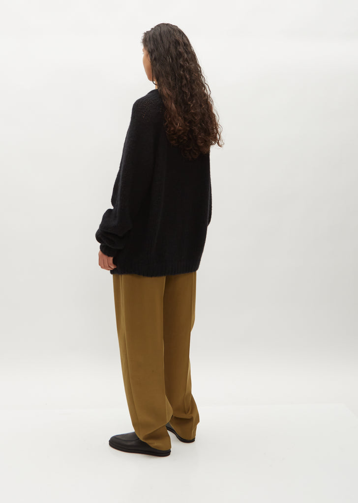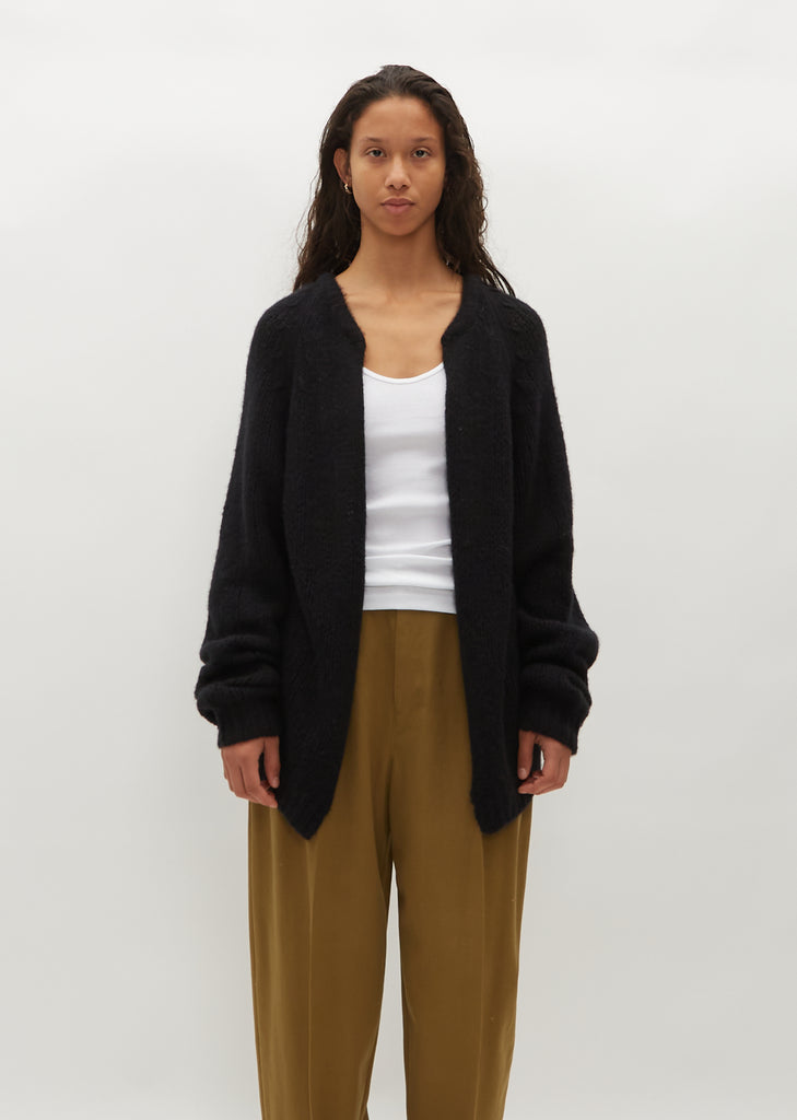 Frenckenberger black open front cardigan with a loose gauge in mid-weight cashmere. Boxy silhouette with a relaxed fit.