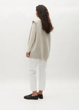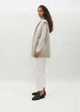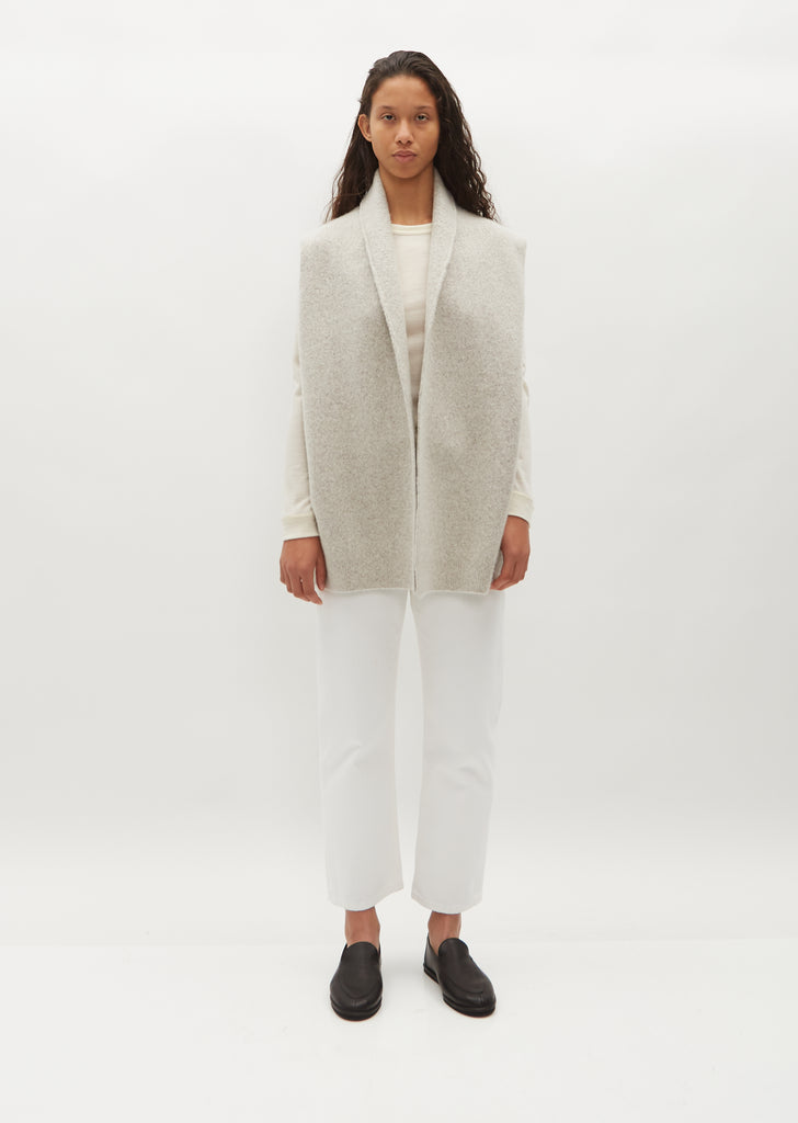 Frenckenberger hazel grey open front cardigan with a shawl collar in midweight felted cashmere. Straight silhouette with a relaxed fit.