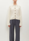 Loulou Studio ivory polo collar cardigan knitted in mid-weight ribbed cashmere. Straight silhouette with a relaxed fit.