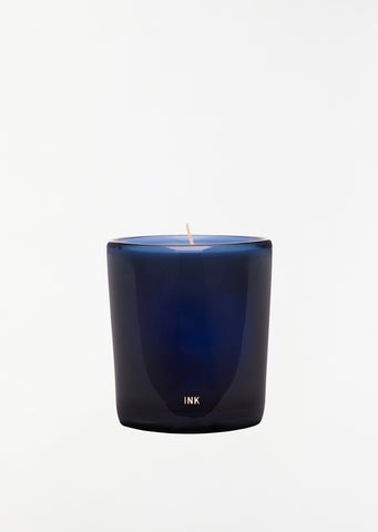 Perfumer H's 325g ink fragrance handblown candle. Elemi, juniper and cedar wood are fused with papyrus, vetiver and frankincense to create the erudite texture of blue ink on white paper.