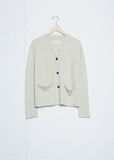Studio Nicholson sand colored v-neck cardigan in a mid-weight merino wool jersey knit.